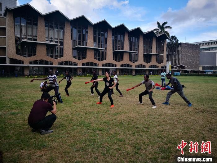 摄制团队在肯尼亚内罗毕大学孔子学院采访 彭蓉 摄
