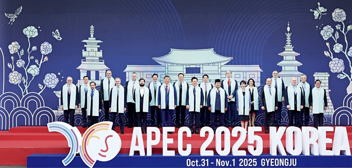 当地时间2025年10月31日上午,亚太经合组织第三十二次领导人非正式会议第一阶段会议在韩国庆州和白会议中心举行