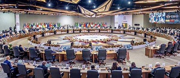 2025年11月23日,南非约翰内斯堡,二十国集团(G20)领导人第二十次峰会进入第二天,与会代表举行工作会议。本次峰会是G20首次在非洲举行