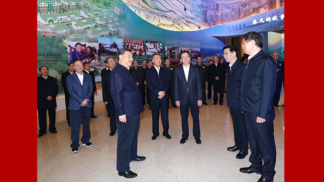 党的十一届三中全会等反映党中央推进改革开放重大时间节点、重大历史事件、重大决策部署的历史照片,拉开中国农村改革大幕的安徽小岗村18位农民按下包产到户“红手印”的雕塑,长征系列运载火箭、天宫号空间站等模型,体现40年来经济建设、政治建设、文化建设、社会建设、生态文明建设历史性成就与变革的实物和资料,呈现全面推进国防和军队现代化、推动全方位对外开放、加强和改进党的建设等图片……逼真的实物模型、详实的图片图表、丰富的视频资料,吸引了习近平等领导同志的目光,他们不时停下脚步仔细观看,听取工作人员讲解,并询问有关情况。